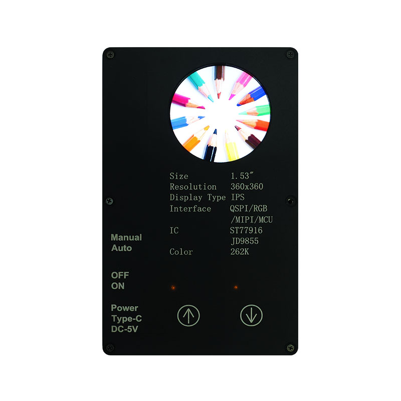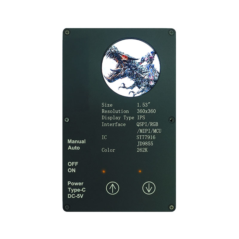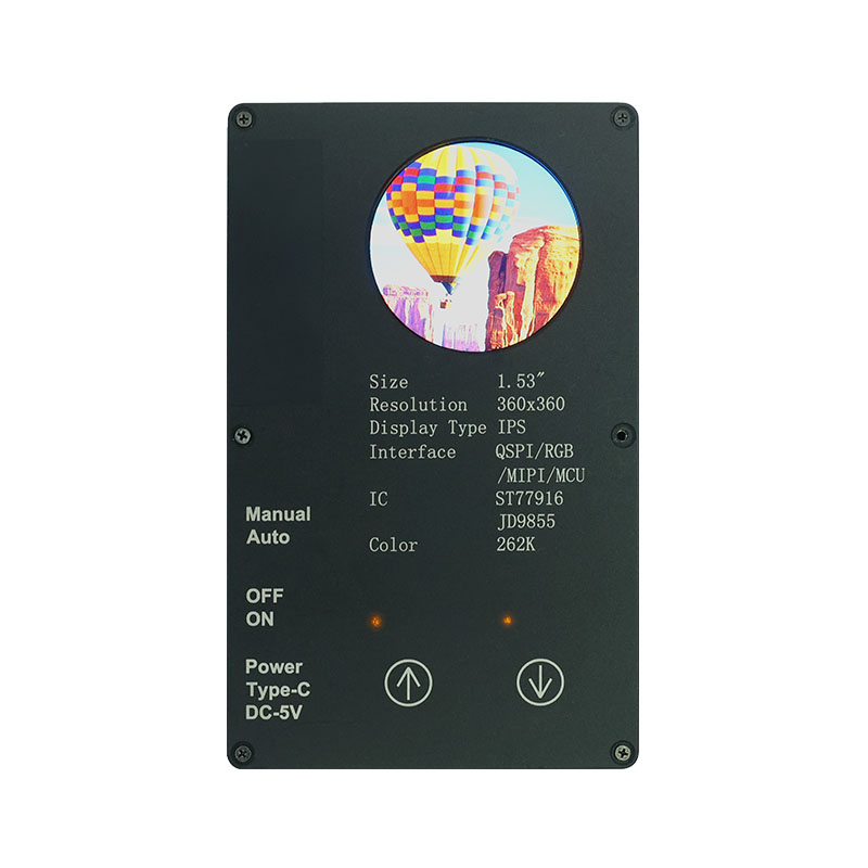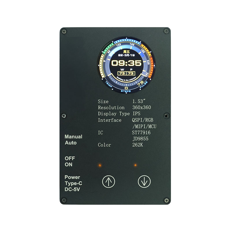 Bu özel ekran, 360×360 yüksek çözünürlük, tüm görüntüleme açıları ve 400 cd/m² yüksek parlaklık özelliklerine sahiptir. Endüstriyel sınıf çalışma sıcaklığı aralığıyla (-20°C~70°C), akar temizleme cihazları ve meyve sıkacakları gibi akıllı ev uygulamalarında net ve istikrarlı performans sağlar. QSPI arayüzü ve ST77916 Sürücü IC, yüksek hızlı veri aktarımına olanak tanırken, kompakt modül boyutu (40,46×41,96×2,16 mm) alan verimliliğini en üst düzeye çıkarır.