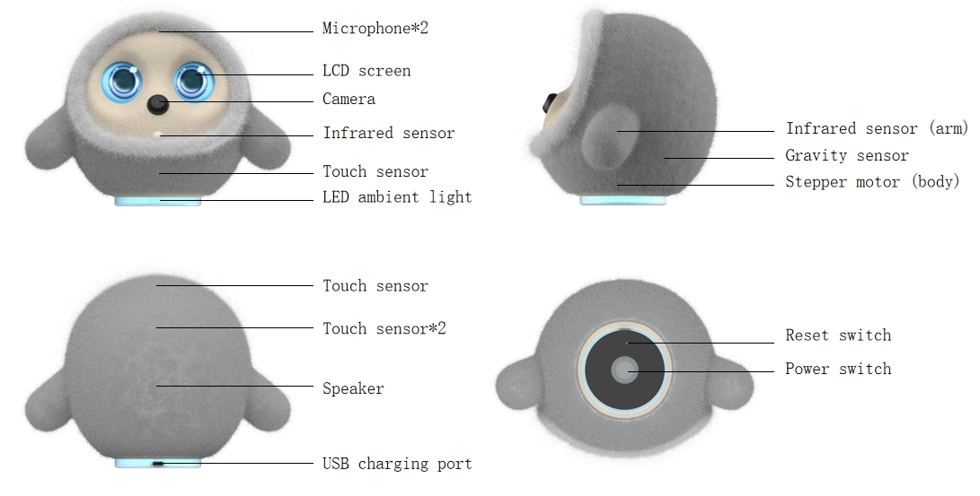 | LCD ifade ekranı | 4,28 inç LCD ekran (gözler), dinamik ifade ekranını ve binoküler ekranı (örneğin "ölü taklidi" veya "sevimli davranma" sırasında görsel geri bildirim). |