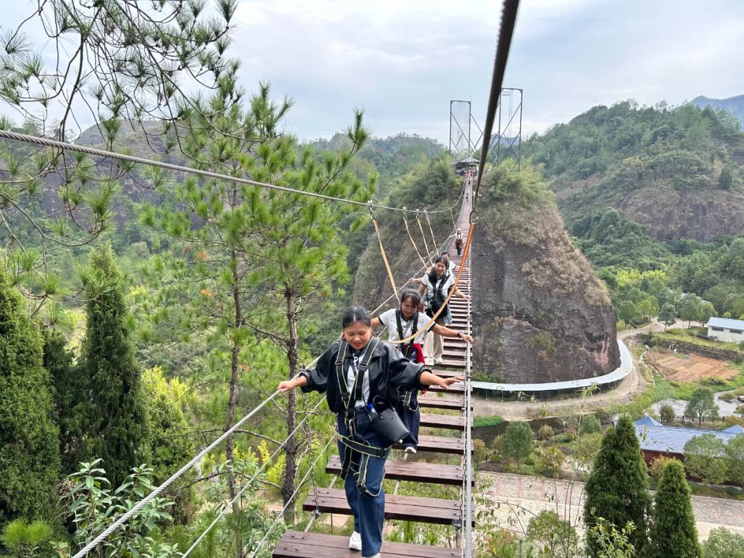 Ekip sabah 9.30'da Ziyun Dağı Ziyaretçi Merkezine ulaştı. Toplu fotoğraf çekiminin ardından günün heyecanlı programı resmen başladı. Katılımcılar, heyecan verici cam kaydırak, 198 metre uzunluğundaki Ziyun Asma Köprüsü ('Vertigo Yürüyüşü') ve adeta 'özgürce uçuyor' hissi veren yüksek zipline gibi bir dizi heyecan verici aktiviteyi deneyimlediler. Şeffaf cam slaytta hızlanarak asma köprü boyunca istikrarlı bir şekilde yürüyen ekip üyeleri, birbirlerini cesaretlendirip desteklediler, zorluklar karşısında cesareti ateşlediler ve işbirliği yoluyla güven inşa ettiler.