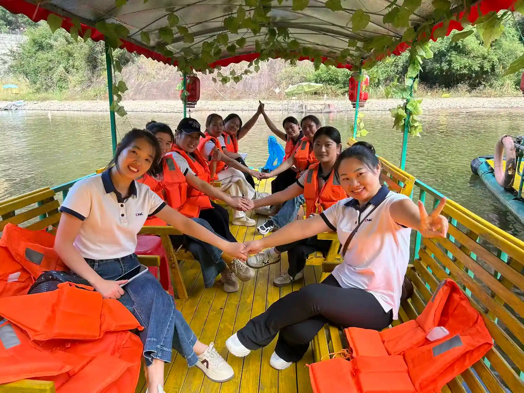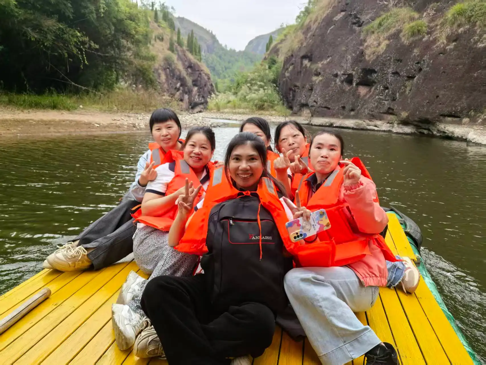 Öğleden sonraki program daha sakindi. Tüm ekip, on litrelik muhteşem manzarada doğal bir yolculuk için bambu sallara bindi. Danxia dağları ile zümrüt sular arasında süzülerek, "yeşil dağların kara kaşlar gibi durduğu ve berrak suların ipek gibi aktığı" pitoresk manzaraya hayran kaldılar. 3,2 kilometrelik su yolu boyunca herkes doğanın huzuruna ve güzelliğine dalarak rahatladı.