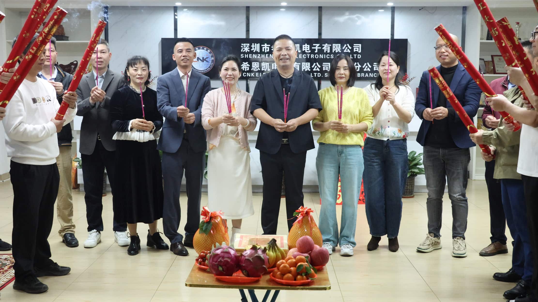 Şafak vakti şirketin üst yönetimi bir araya gelerek tüm çalışanları büyük bir açılış törenine davet etti. Masalardan tütsü dumanı yükseliyordu ve adak boldu. Bu sadece cennete ve dünyaya olan saygımızı ifade etmekle kalmadı, aynı zamanda tüm çalışanların olumlu hava ve sorunsuz işlerle dolu müreffeh bir yıl için yürekten dileklerini de taşıdı. Tütsülerin ortasında liderler büyük bir özveriyle tütsü ikram ettiler ve şirketin yeni yıldaki büyük planları için bereket ve iyi şanslar dilediler.