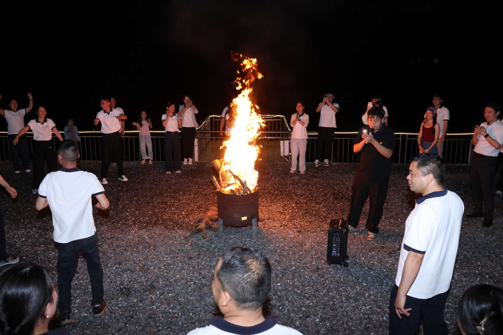 Hiyerarşik ayrımlar veya departman sınırları olmaksızın herkes ateşin etrafında toplanmış, günlük yaşam ve iş hakkında sohbet ediyor, cızırtılı sıcaklıkta her zamanki formalite ve mesafeyi eritiyordu. Sıcak yemeğin her lokması ve kahkahalarla, rahat ve konforlu atmosferde kalpler birbirine daha da yakınlaşıyordu.、